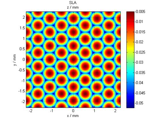 Figure 5: Hexagonal lens array generated by the Powerphotonic process